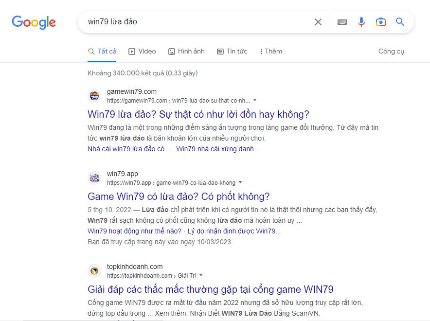 Những cổng game lừa đảo sẽ không thể nào không có thông tin trên những trang review game cả. Và khi tìm kiếm thông tin Win79 lừa đảo trên những cổng tra cứu onine cũng có xuất hiện một vài kết quả. Nhưng cũng chỉ là thông tin chưa được xác thực cũng như không chính thống.